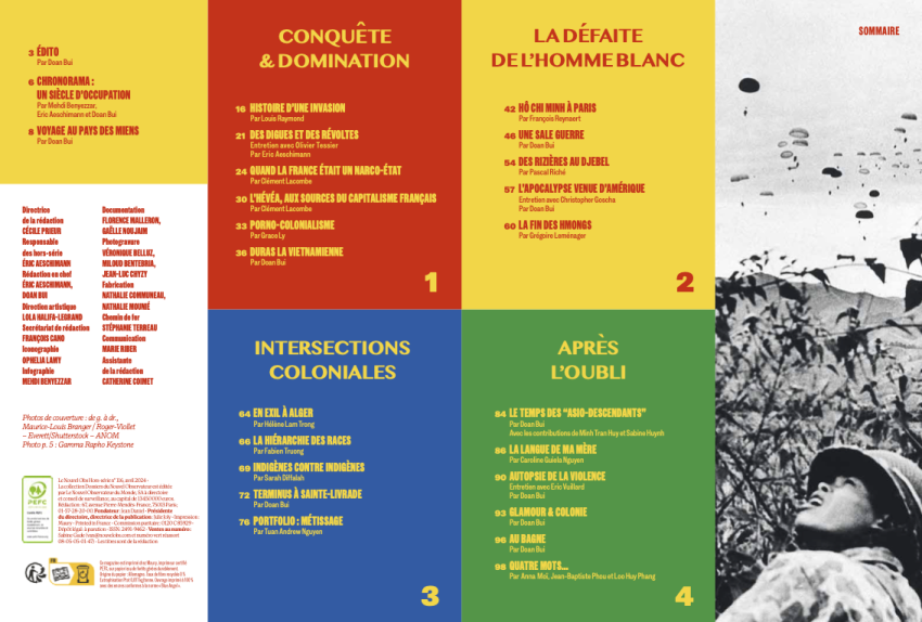 Il y a 70 ans, à Dien Bien Phu, la France était défaite par le Vietminh. 1858-1954 : de la conquête à la défaite, s'est déroulé presque un siècle. L’histoire de l’Indochine coloniale reste pourtant mal connue, effacée de nos mémoires collectives, réduite à des chromos exotiques. Dans ce hors-série exceptionnel, le Nouvel Obs décortique les rouages de la machine coloniale, du trafic d’opium à l’exploitation des corps, raconte la violence de la guerre d’Indochine, prémisse du désastre algérien. Et propose de renverser le regard en donnant la voix à des auteurs et artistes asiodescendants, qui interrogent cette histoire.